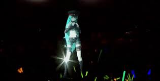Hatsune miku hologram. Miku doesnt exactly live with Kondo either except as a talking hologram floating in a 2800 desktop device in his Tokyo home. Hatsune Miku Japanese. They used motion capture to register the movements of a human dancer into an animation.